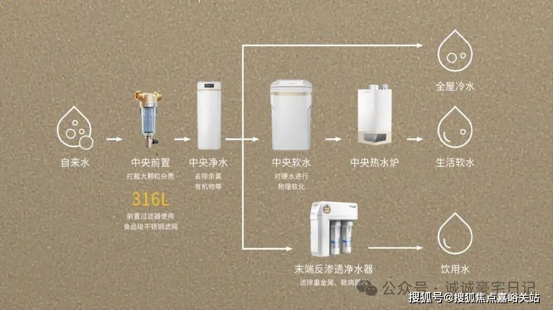 全屋给水管304不锈钢管道,其具备优异的抗腐蚀与抗菌能力,长期使用不结垢、不滋生细菌。四阶递进净水方案
