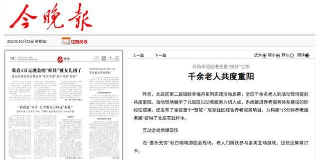 昨天,北辰区第二届银龄幸福月系列实践活动启幕,全区千余名老人到活动现场提前共度重阳。活动现场展示了北辰区以助餐服务为切入点,系统推进养老服务体系建设的阶段性成果,还发布了全区首个“智慧+”居家社区综合养老服务项目,为构建“15分钟养老服务圈”提供了北辰实践样本。