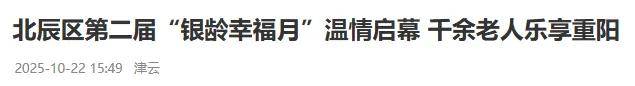10月22日,天津市北辰区隆重举办“悦享银龄 幸福‘辰’现”北辰区“善作善成·项目化”、九九重阳共话银龄幸福时暨第二届银龄幸福月系列实践活动,全区千余名老人在活动现场游玩体验。此次活动积极践行、积极应对人口老龄化国家战略,持续擦亮“颐养北辰”养老服务品牌,不断完善全区养老事业发展制度体系、服务保障体系和社会参与体系,丰富活跃老年人精神文化生活,充分展现北辰区广大老年人的良好精神风貌。
