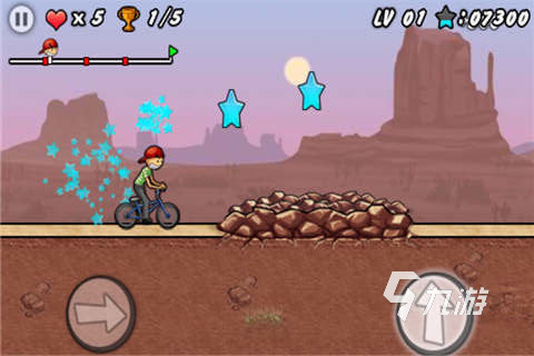 这款游戏虽然是自行车类型的,但是却是一个操控自行车进行跑酷的游戏,在这里玩家需要控制好主角来躲避各式各样的障碍物,在游戏中玩家只有安全的抵达目的地才能够获得成功,一定不要忘记收集路上的星星哦,只有将路上的所有星星收集完毕,才能够让你结束的时候拿到高分。