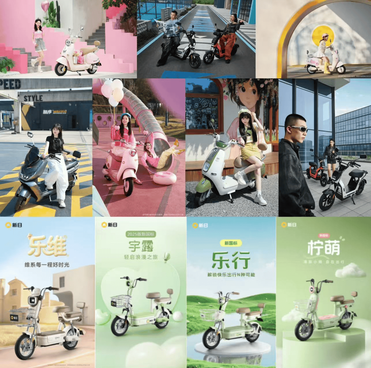 在人群触达上,新日以精准的年轻化战略打破圈层壁垒,签约AKB48 Team SH担任“新品种草官”,精准注入时尚与活力基因,直达年轻圈层。同时,携手健力宝、拓乐、晨光等众多不同领域的知名品牌开展跨界联动,让品牌穿透固有圈层,精准触达年轻与泛生活人群。这一系列跨界联动,目标不止于流量互导,提高品牌声量,更在于围绕共同用户构建品牌生态,互相借力、彼此增值,实现与其他品牌之间的深度融合,全方位地渗透到用户的各种生活场景之中。让新日从“电动车品牌”转变为与年轻消费者趣味同频、生活相伴的“潮流伙伴”。