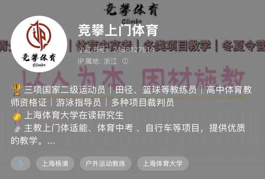 “自行车培训只是我们的业务之一,占比大概三四成。”小李直言,自行车培训存在“一次性消费、回头客少”的短板,因此将体育培训重心放在复购率更高的青少年体育培训上。他现在运营的“竞樊上门体育”品牌,主营业务涵盖中考体能训练、基础跑跳补练、体质健康提升等,这类课程市场价格约300元/小时,有些机构收费可达800至1000元/节课,而他的团队凭借上门服务模式,收费更具灵活性和性价比。