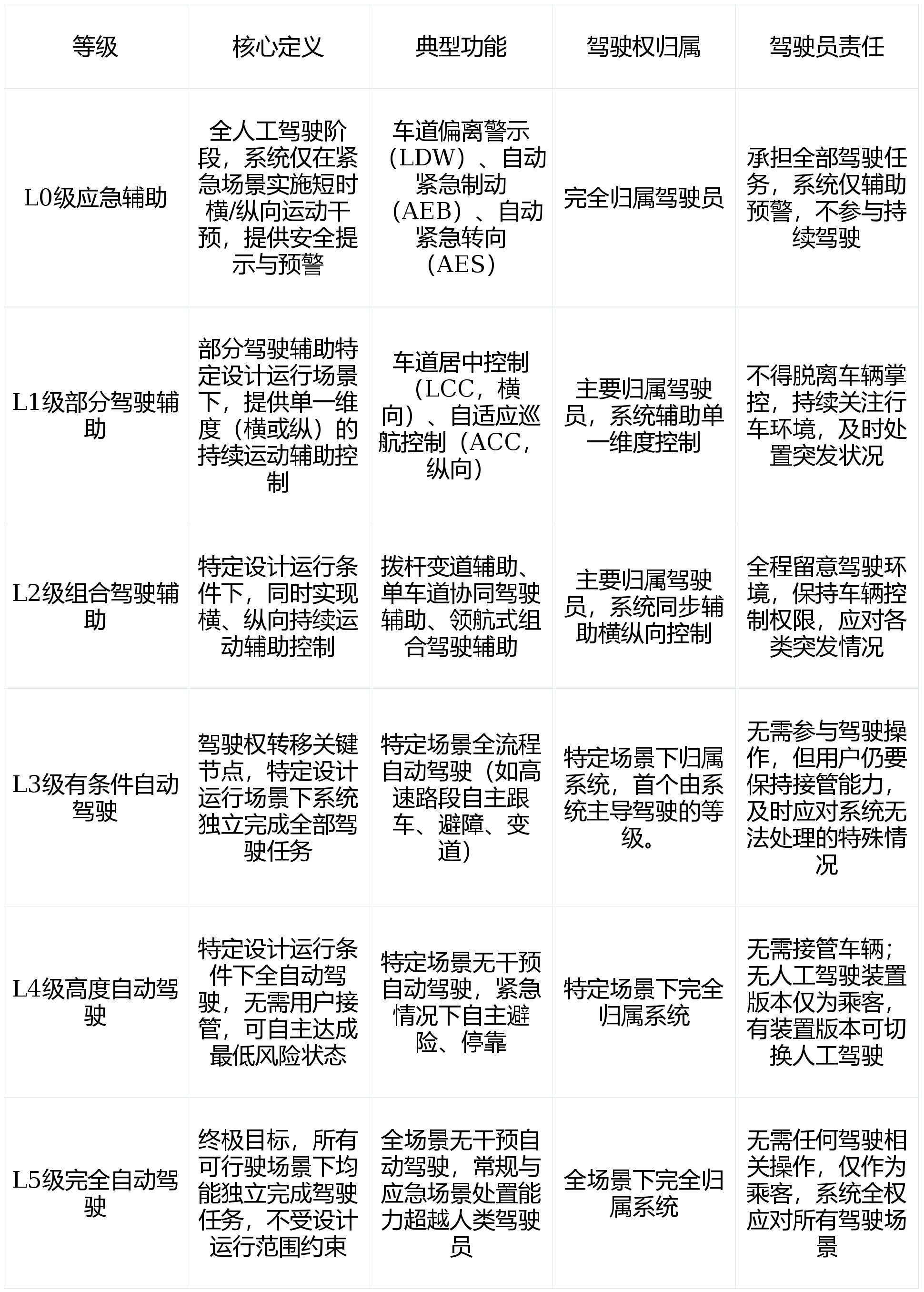 2014年,美国汽车工程师学会(SAE)发布自动驾驶分级框架,首次明确L3级定义:系统可接管核心驾驶任务,但驾驶员需随时待命响应接管请求。彼时全球仍处于初级驾驶辅助阶段,这一概念为行业智能化指明了方向。