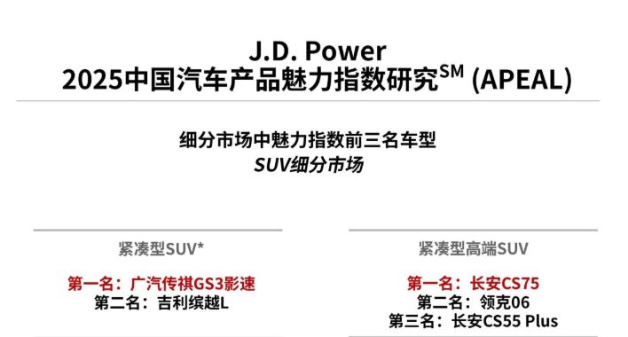 销量是产品实力的直接体现,而品质则是最好的“护城河”。据中国汽车质量网统计,影速自2023年至今一直稳居自主品牌小型SUV质量冠军,在《J.D.Power2025中国车辆可靠性研究(VDS)》中,影速荣获紧凑型SUV可靠性第一名;在《J.D.Power2025中国汽车产品魅力指数研究(APEAL)》中,影速同样位列紧凑型SUV榜首,这意味着用户在实际用车中,对其设计、性能、智能化及驾驶感受给予了极高的评价。