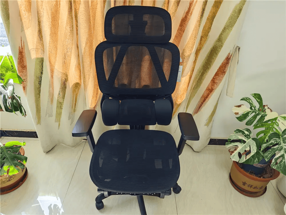 它的6D头枕能上下、前后、左右自由调节,弧形支撑在直坐或斜靠时都能稳稳托住颈部;坐垫和椅背的高度、前后调节都集中在侧边按钮上,用起来很顺手。椅背最大可后仰到140°,并支持三档角度切换,办公、放松、午休都能找到合适位置,后仰时阻尼柔和不突兀。抽拉式腿托滑轨顺畅、支架牢靠,午休时轻轻一放就能把坐姿切换成半躺。采用低弹网布,透气、不容易塌陷、久坐不闷;动态自适应腰托会随着身体动作微调角度,始终贴合腰椎,长时间坐着也不容易累。整椅从颈部到腰部都有支撑,配合四级防爆气压杆和铝合金五星脚,承重稳定、耐用性高。