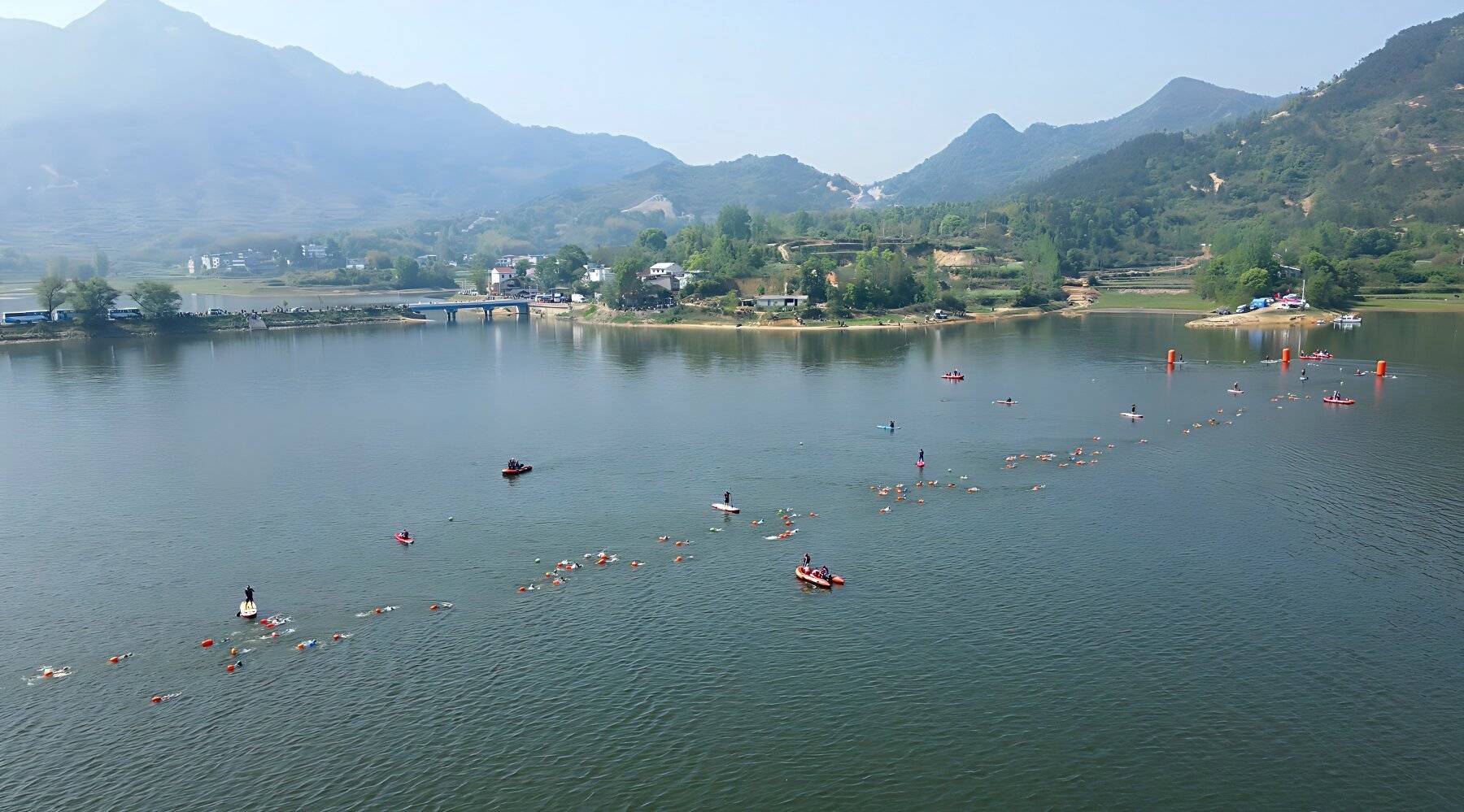 赛道串联山野与乡村,尽展浠水生态人文之美。游泳赛段位于鄂东第一大水库——白莲河水库,水质达国家饮用水源地标准;自行车赛段单圈约7.4公里,路面宽超6米,沿途青山翠谷,田园风光如画;跑步赛段为新建的2.5公里景观赛道,选手在冲刺间可尽享水天一色的独特体验。