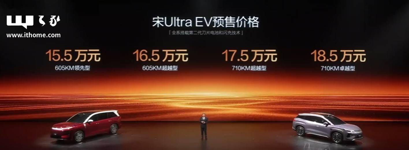 14、比亚迪王朝首款 B 级纯电 SUV 宋 Ultra EV 发布:预售价 15.5 万元起,再送 6 个月免费闪充权益